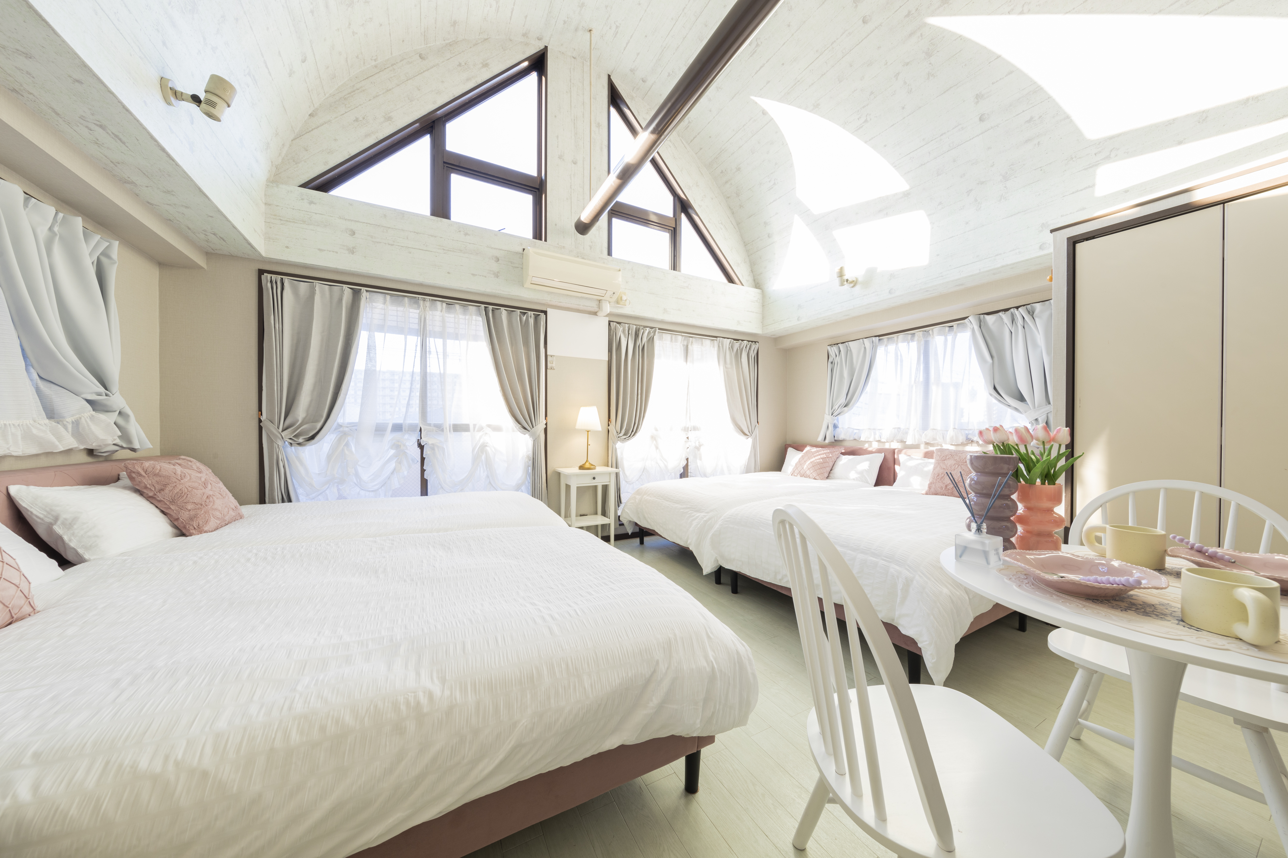 Guests can enjoy exclusive use of the 2nd to 4th floors of a private house. With a spacious 146㎡ layout and four bedrooms, it's ideal for large groups to relax comfortably.