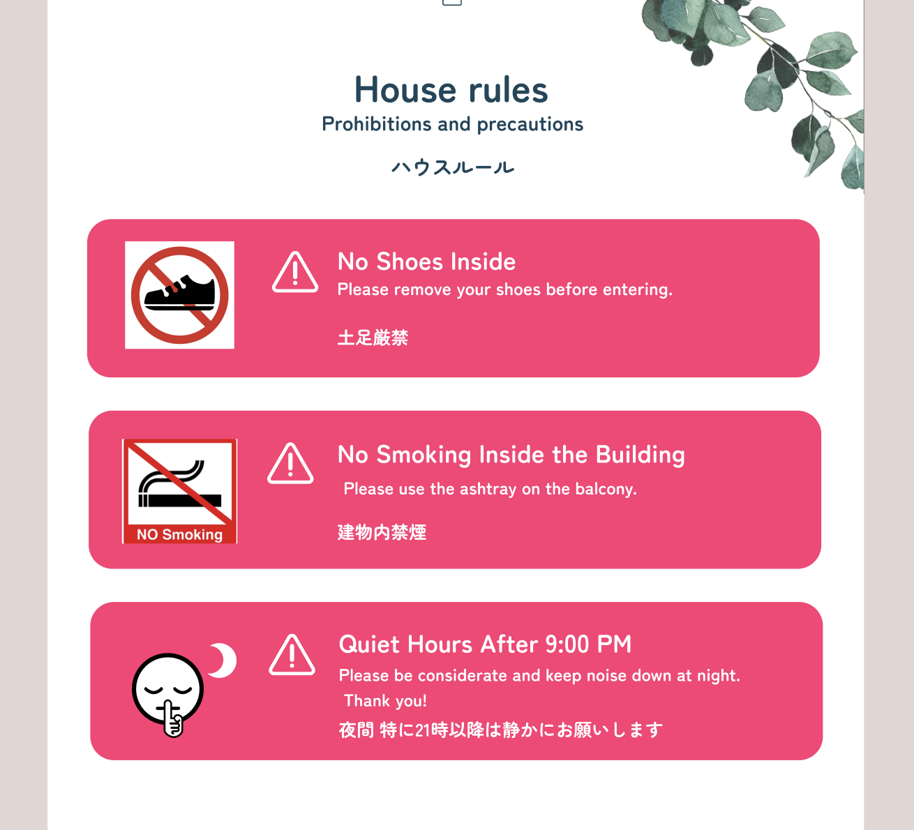 We kindly ask that all guests follow the house rules at all times.